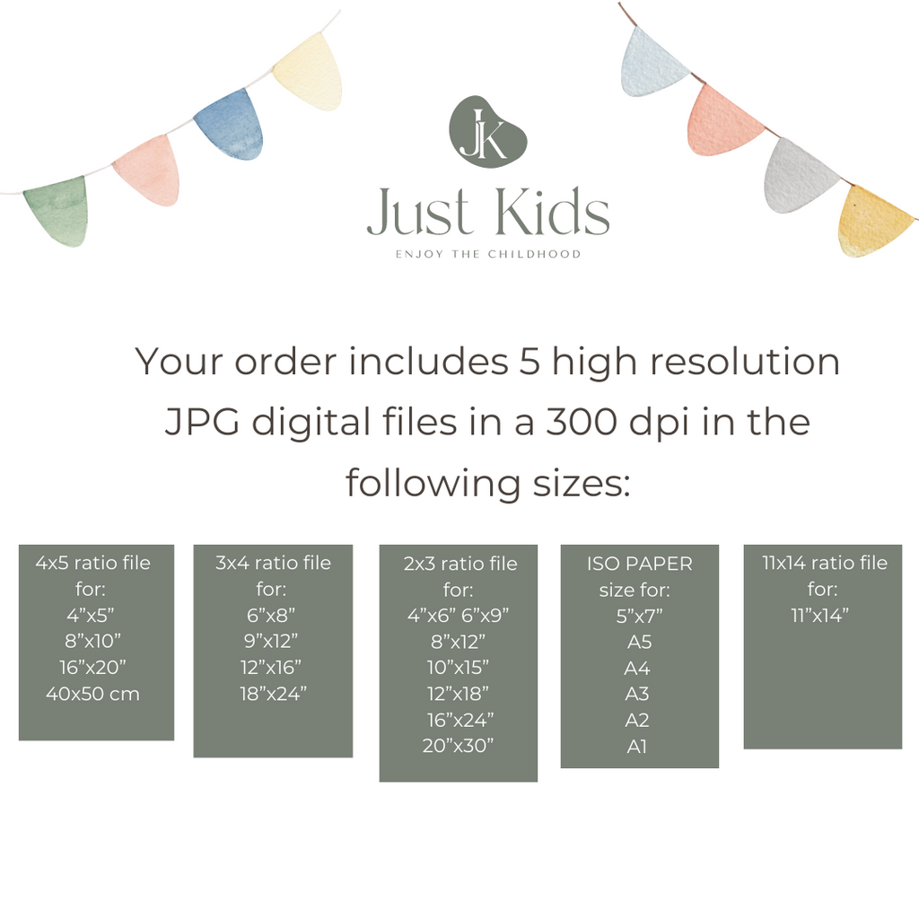 ✔️You will receive 5 high-resolution JPG digital files in 300 dpi in the following sizes: