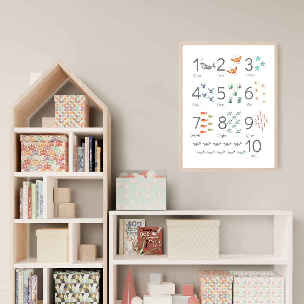 Printable Watercolor Numbers Poster - Ocean Animals