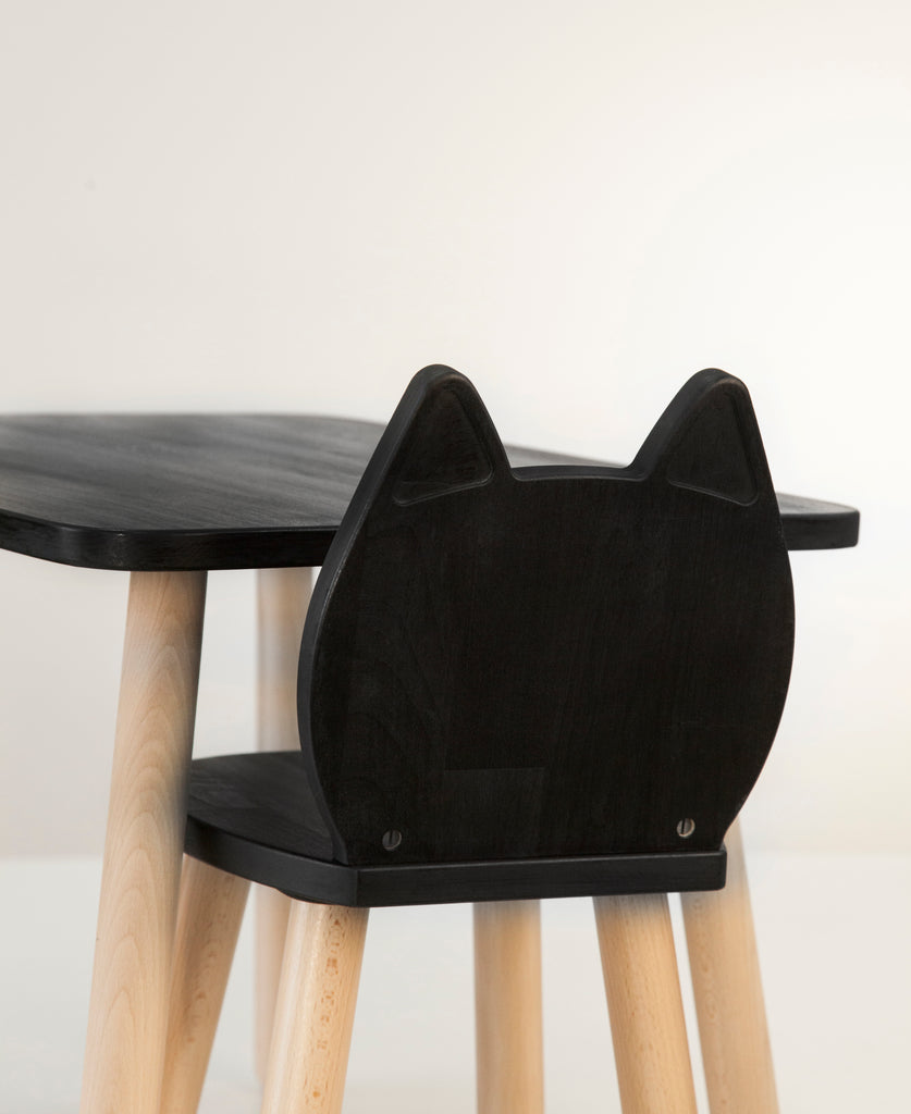 Wooden Kid's Table and One Cat Chair Set - Beech Wood